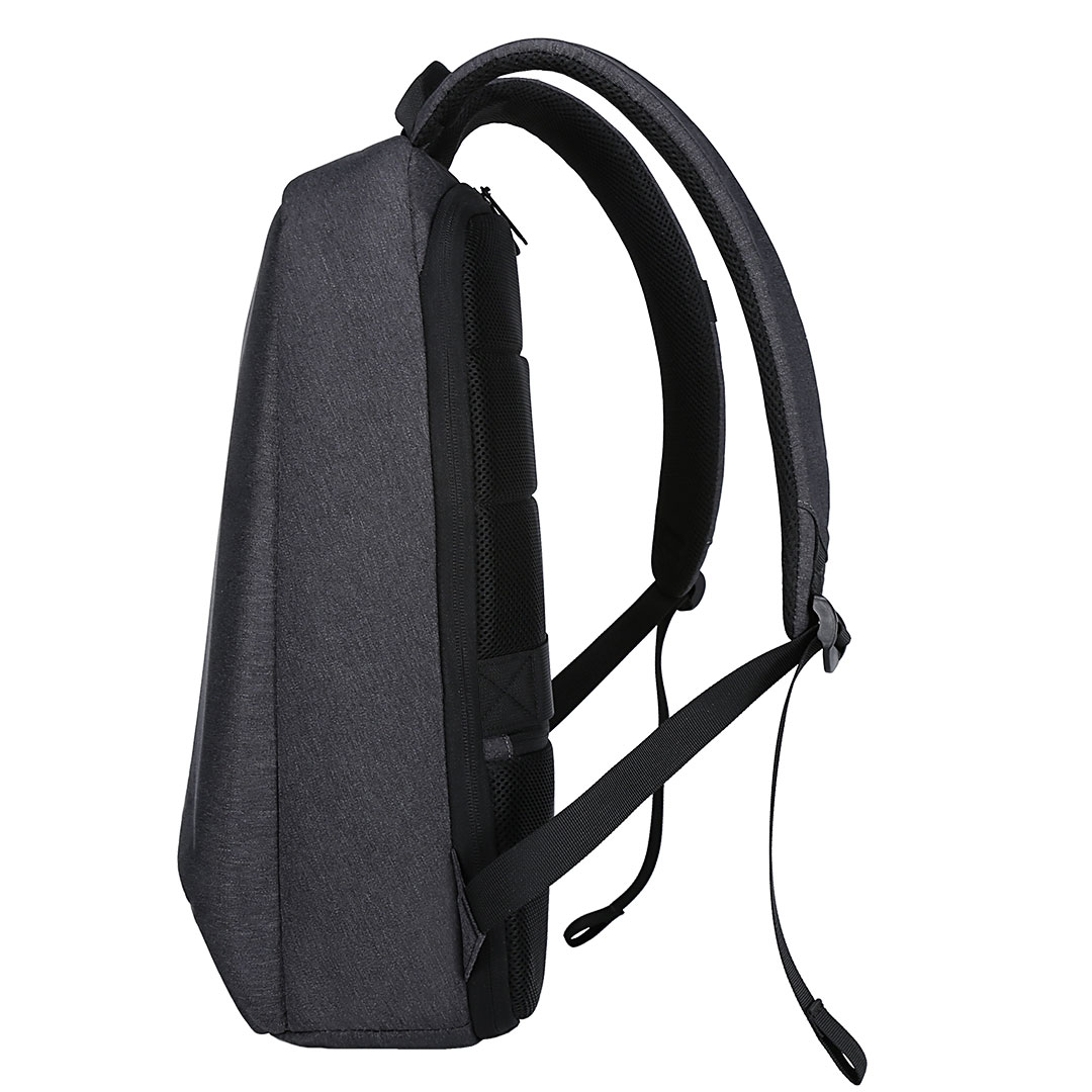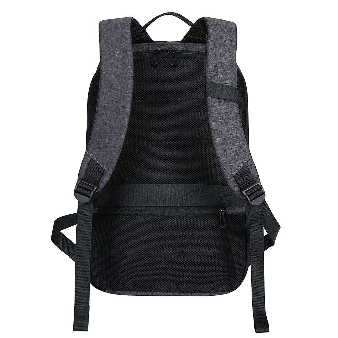 Opis Poslovni ranac sa jednim glavnim odeljkom, naloženi odeljci za tablet i laptop veličine ekrana 15", USB konektor, skriveni džep sa rajsferšlusom pozadi